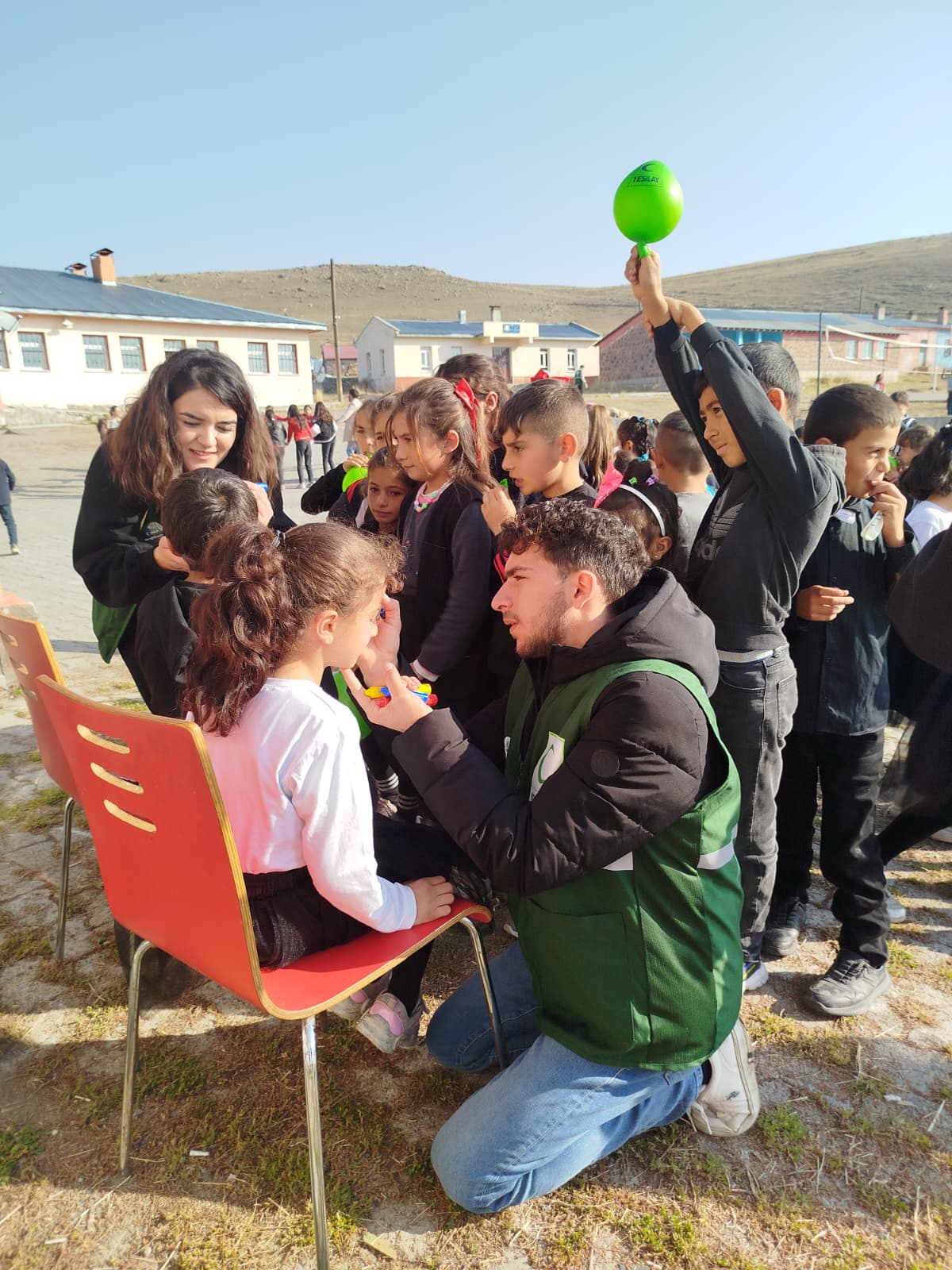 Kulüp üyeleri, çocukların yüzlerini rengarenk boyayarak ve onlara balonlar dağıtarak etkinliğe neşe dolu bir başlangıç yaptı. Erkek öğrencilerle futbol oynayan kulüp üyeleri, kız öğrencilerle dans ederek enerji dolu anlara imza attı. Etkinlik boyunca miniklerin kahkahaları ve kulüp üyelerinin coşkusu, okul bahçesini adeta şenlik alanına çevirdi. Çocuklar, renkli yüz boyamaları ve uçan balonlarla bayram havasında bir gün yaşarken, Genç Yeşilay Kulübü üyeleri de onların mutluluğuna ortak oldu.